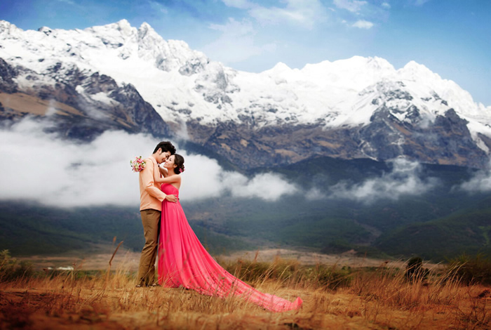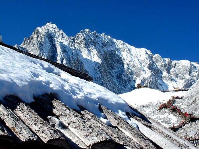 玉龙雪山位于云南省丽江市玉龙纳西族自治县境内,丽江市区北面15公里外,玉龙雪山海拔5596米,是国家5A级风景名胜区、云南省级自然保护区。是北半球最南的大雪山。南北长35公里,东西宽13公里,面积960Km2,高山雪域风景位于海拔4000米以上,以险、奇、美、秀著称于世,随着时令和阴晴的变化,有时云蒸霞蔚,玉龙时隐时现;有时碧空如水,群峰晶莹耀眼;有时云带束腰,云中雪峰皎洁,云下岗峦碧翠;有时霞光辉映,雪峰如披红纱,娇艳无比。整个玉龙雪山集亚热带、温带及寒带的各种自然景观于一身,构成独特的“阳春白雪”主体景观。雨雪新晴之后,雪格外的白,松格外的绿,掩映生态,移步换形,很像是白雪和绿松在捉迷藏,蔚为奇观。