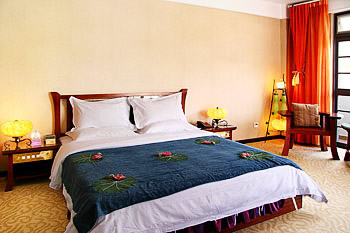 丽江瓜玳国酒店坐落在丽江市以西的寨后下村瓜玳国——荷塘小镇别墅群旁,比邻雪山中路,在酒店客房内就能看到玉龙雪山,酒店离丽江古城2.5公里。 酒店集住宿.会议.餐饮于一体,整座建筑采用了简洁的古建筑风格特点,室内装潢完美体现经典豪华.雍容富贵之气势.